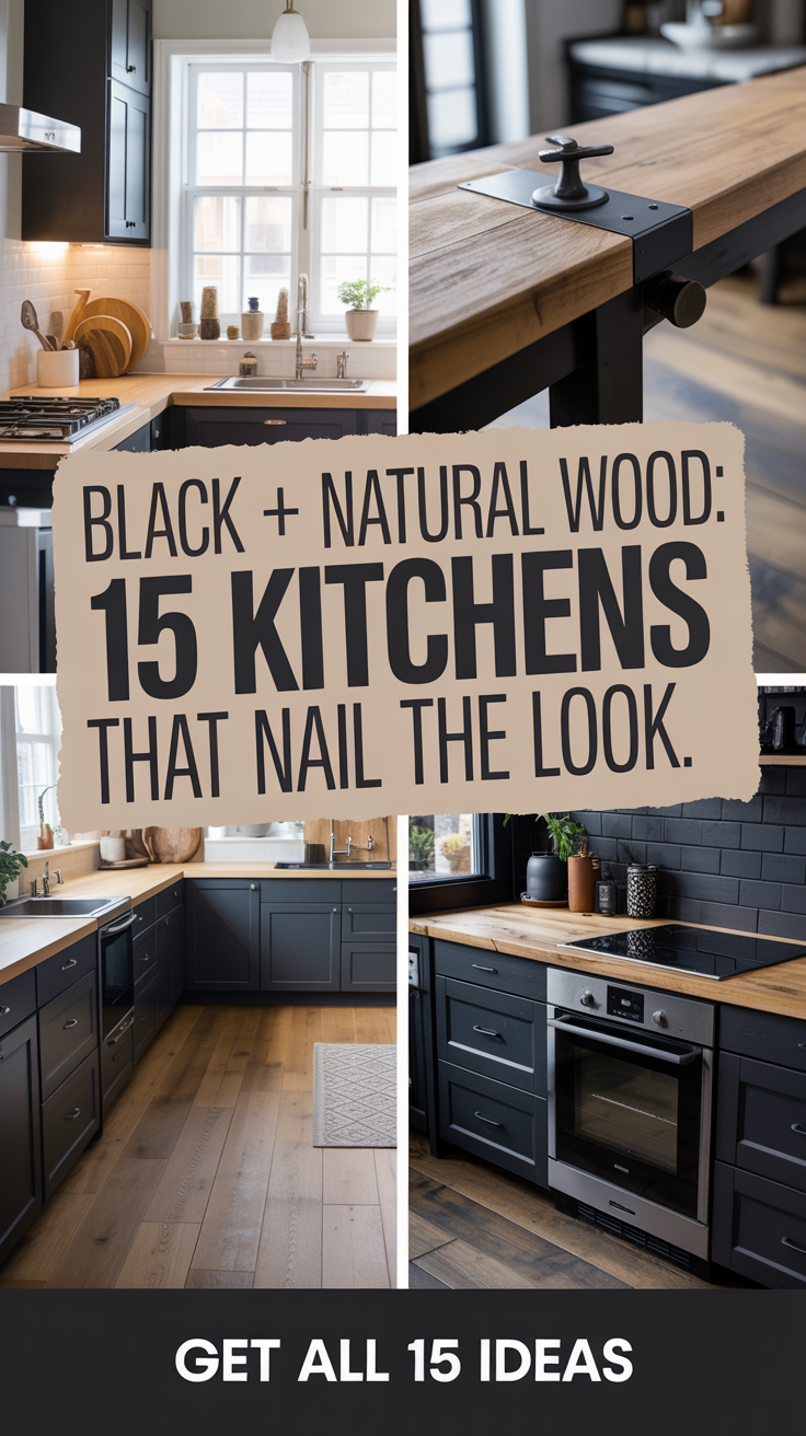 Transform your kitchen into a sanctuary of style and warmth by blending black cabinetry with natural wood elements. This dynamic duo creates a striking contrast, infusing depth and coziness into your space.