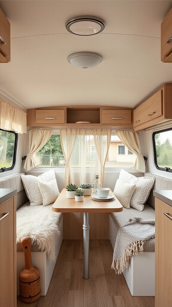 Light wood tones can transform your camper interior, infusing it with warmth and an airy vibe that feels both inviting and spacious.