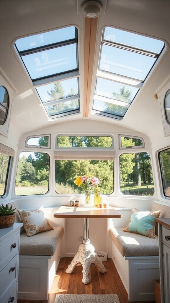 When you think about camper interiors in California, bright and airy designs instantly come to mind. These spaces often feature white walls that reflect natural light, making even the smallest areas feel spacious.