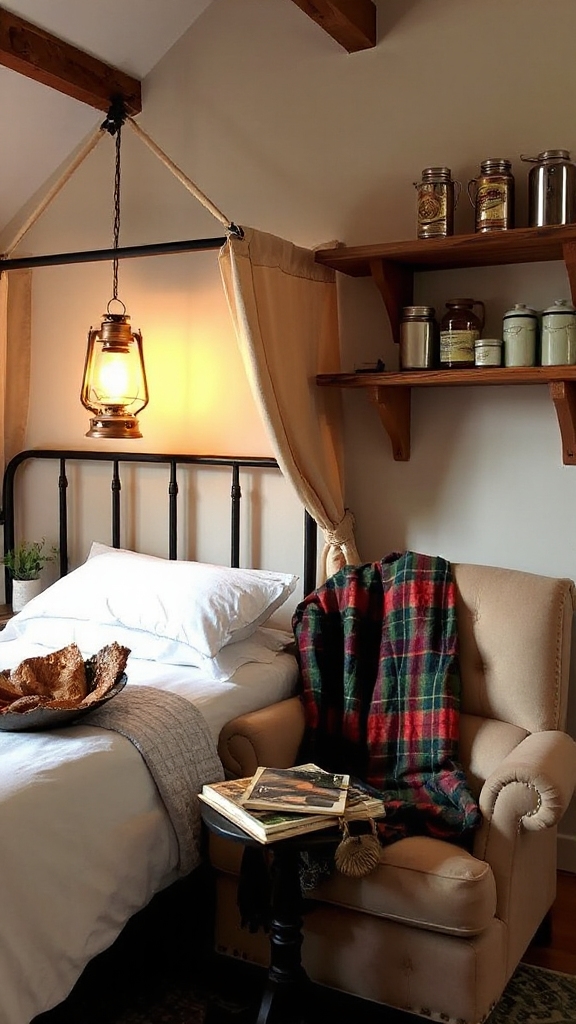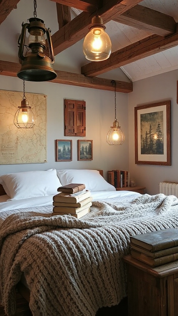 Nothing captures the warm glow of campfire memories quite like vintage camping lanterns strategically placed throughout your bedroom.