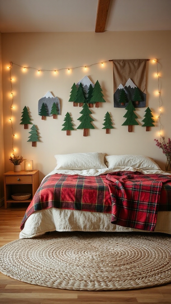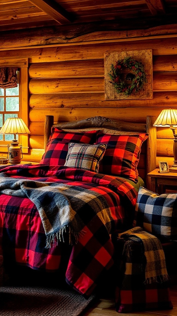 Transform your camping-themed bedroom into a cozy retreat by layering plaid and buffalo check bedding throughout your sleep space.
