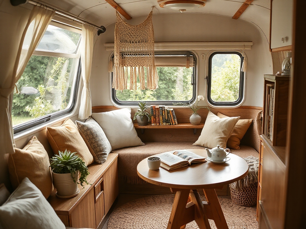 For static caravan makeovers, dedicate a window area for reading or chilling with a hot drink. It becomes your own tiny getaway spot within your peaceful retreat.