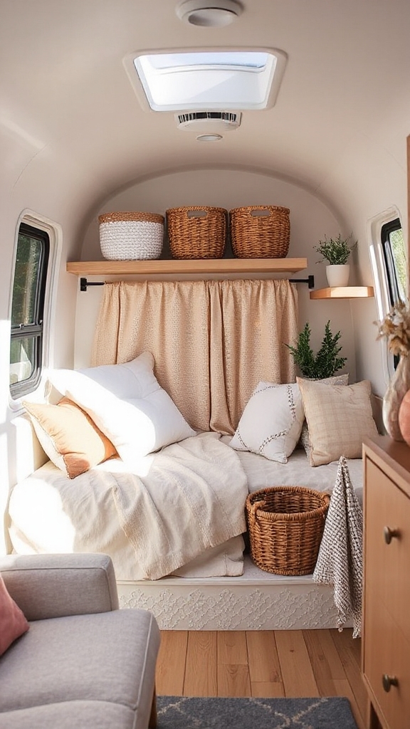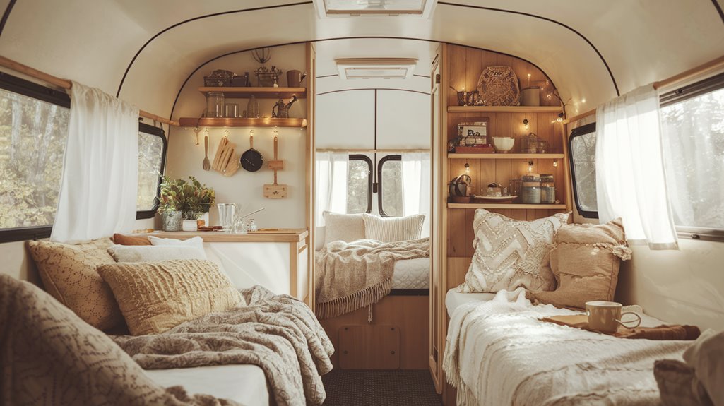 Incorporating cozy throw blankets can add an extra layer of warmth and comfort, making your camper feel even more inviting.