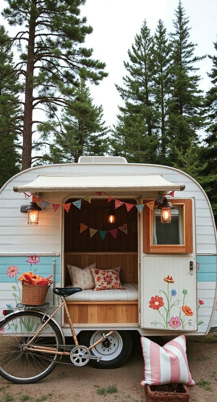 DIY wood options offer a rustic touch, while a fresh coat of Rustoleum paint can breathe new life into old surfaces, ensuring your trailer remains welcoming for guests.
