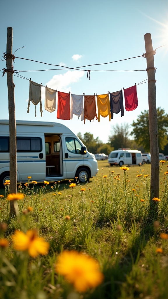 Use your vehicle’s windows as anchor points for retractable lines, or invest in portable drying racks. You can also utilize tent guy lines, camping chairs, and awnings to create effective drying spaces.