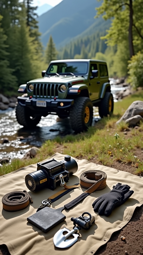 Pack essential components like recovery straps, D-ring shackles, and a winch with at least 8,000-pound capacity.