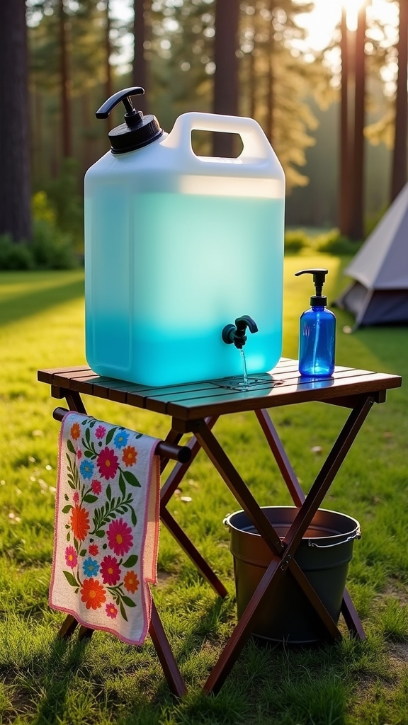 Beyond organizing your trunk space, creating a functional camp kitchen demands running water for cleaning and cooking.