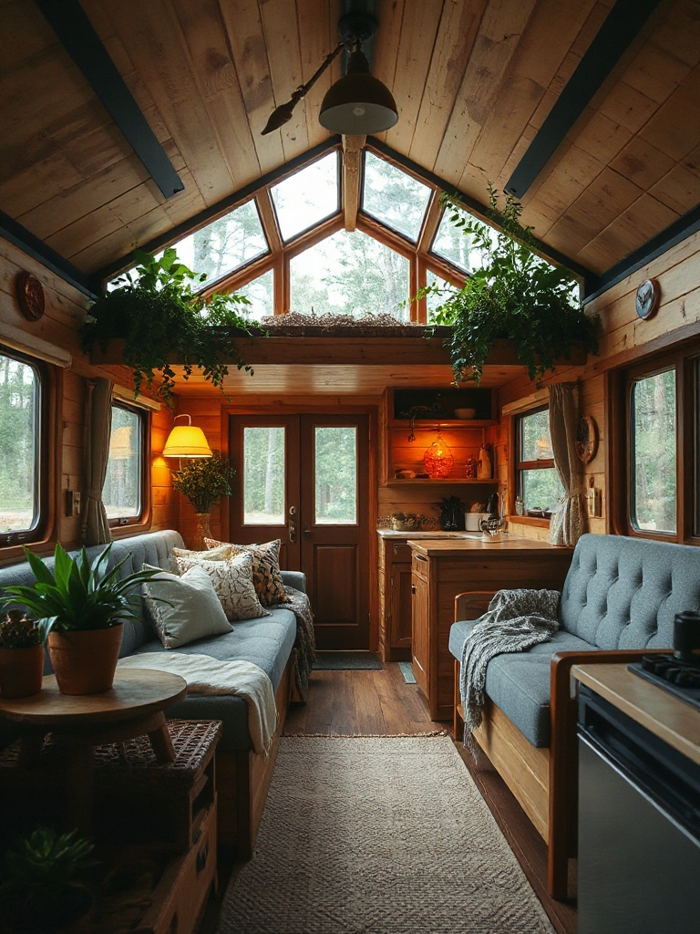 You’ll find innovative solutions like convertible spaces, stargazer windows, and custom lighting that maximize every inch while creating an inviting atmosphere.