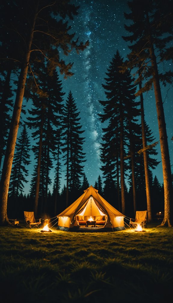 You can even paint rocks with glow-in-the-dark paint to personalize them. This subtle lighting effect enhances your camping inspiration and creates an ethereal glow as the night falls. Perfect for a backcountry camping aesthetic or any adventure travel aesthetic that needs a magical touch.