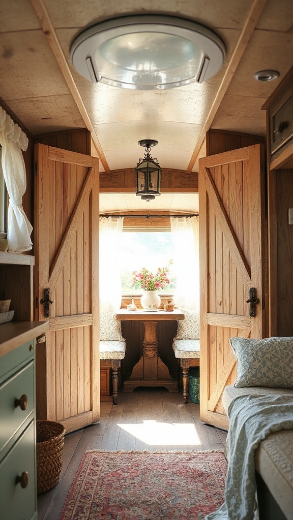 As you explore innovative ways to maximize space in your vintage camper, sliding barn door room dividers offer a stylish and practical solution for separating living areas.