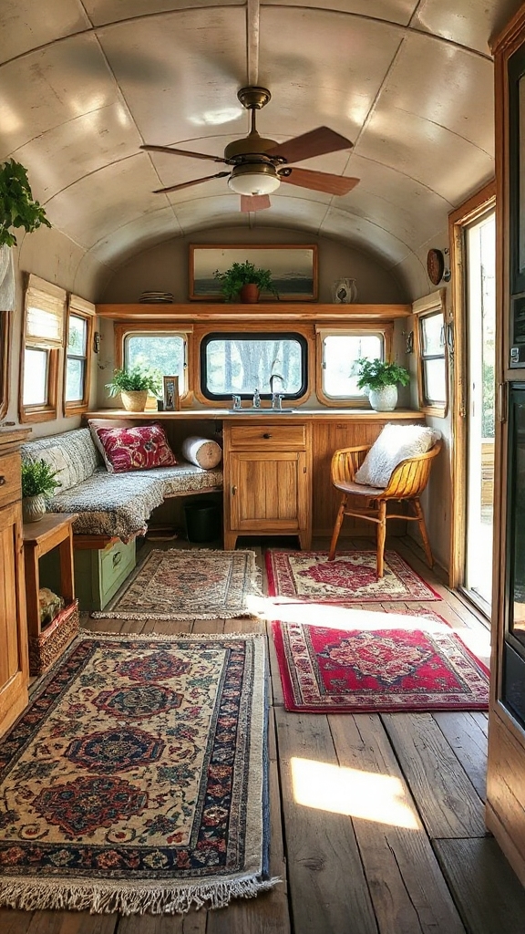 Natural fabrics and vintage textiles serve as the heart and soul of authentic camper interiors, with linen upholstery leading the way in both style and functionality.